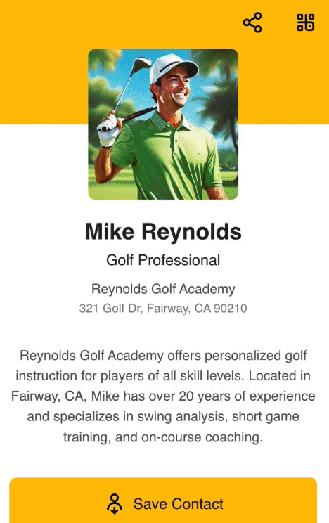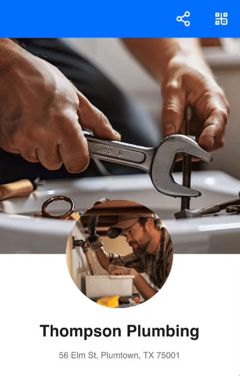 Every profile gets a shareable link and QR code instantly. Print it, text it, post it.